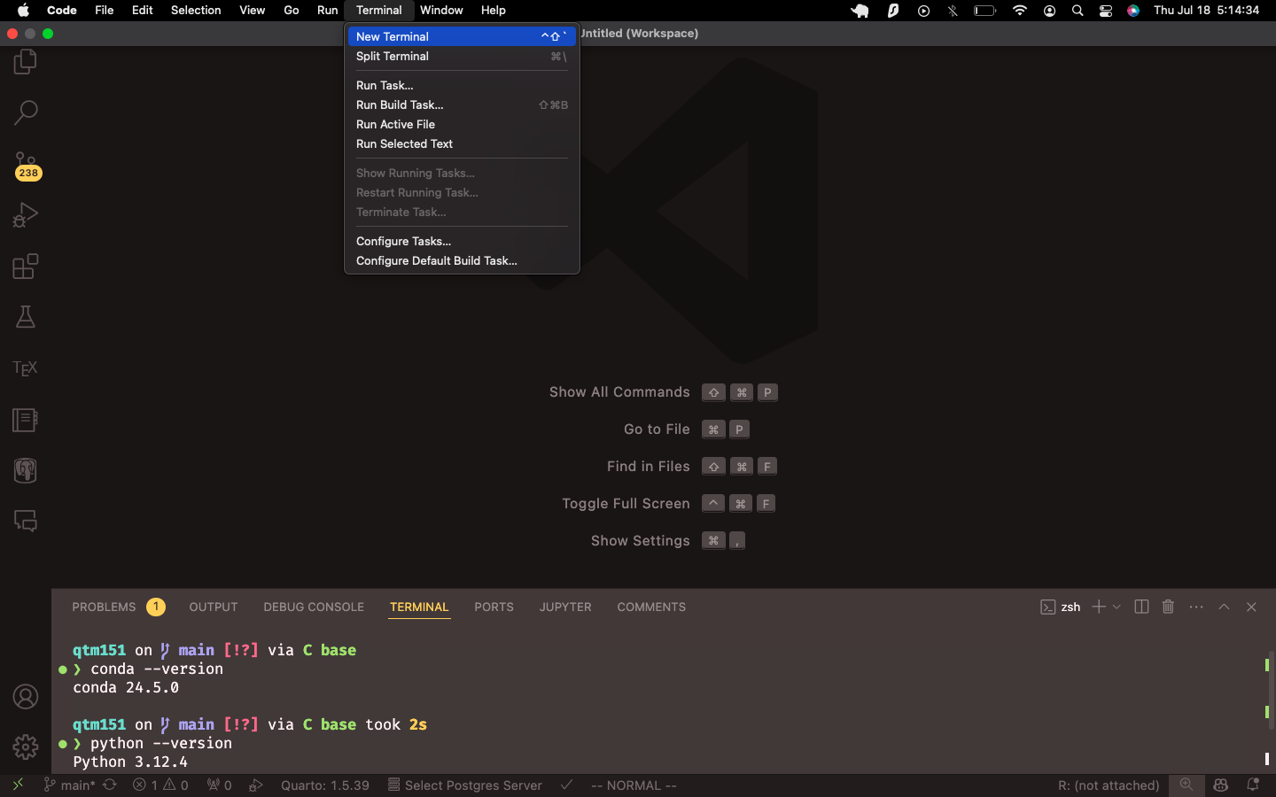 - Open a new terminal or command prompt. On VS Code, you can do it by clicking on “Terminal” > “New Terminal” in the top menu.