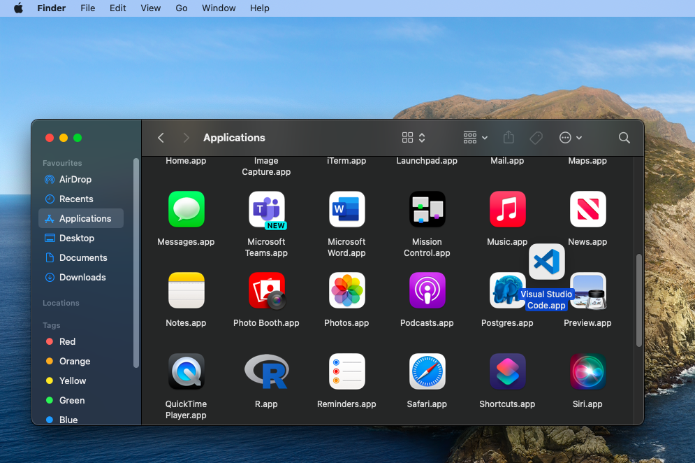 - Open the downloaded .zip file and drag the VS Code application to the Applications folder.
