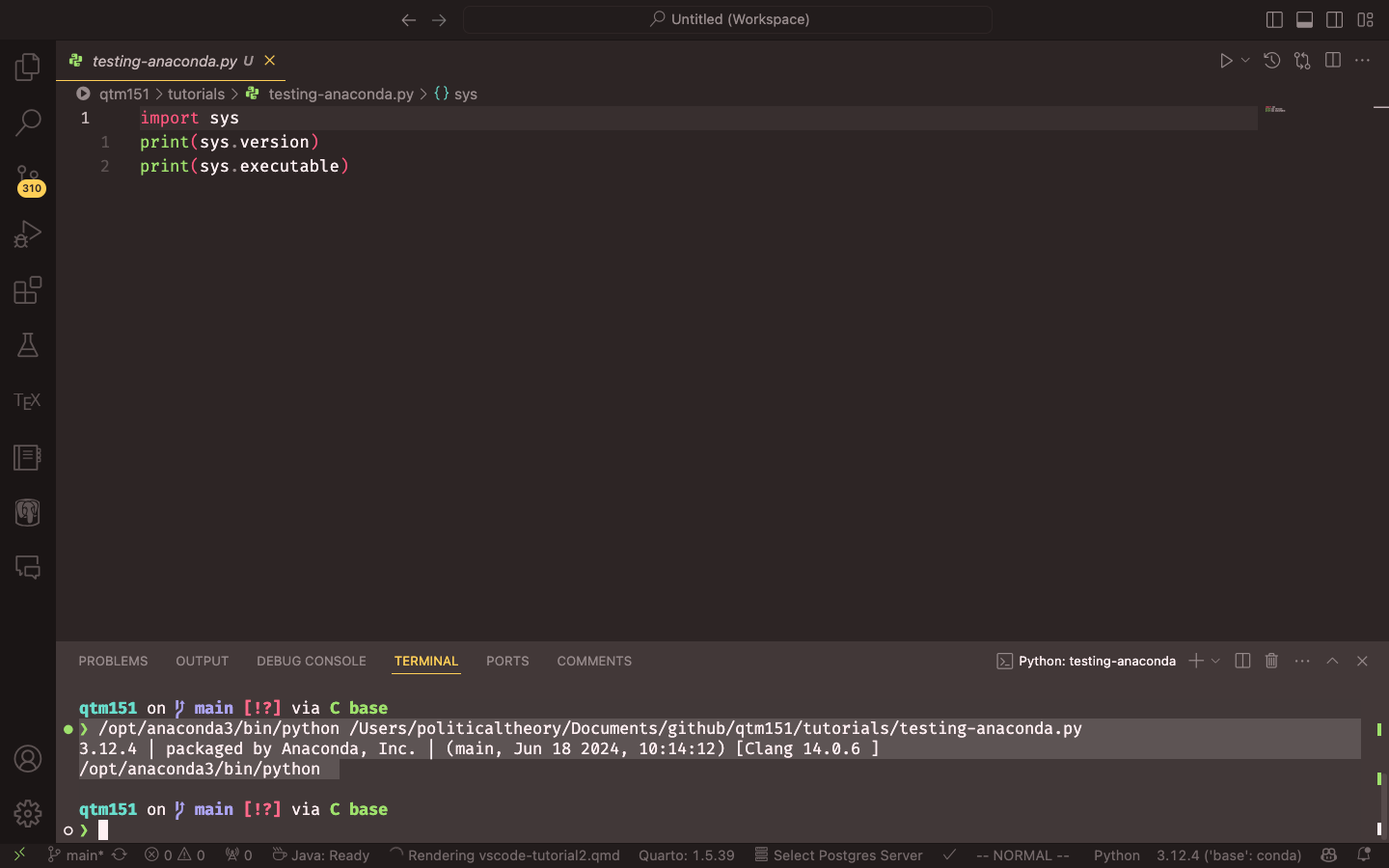 This tutorial will guide students new to computer programming through the process of installing Visual Studio Code (VS Code) and connecting it with Anaconda. We will cover each step in detail to ensure a smooth setup process. If you have any questions or encounter issues during the installation, please feel free to ask for help from me (danilo.freire@emory.edu) or the QTM151 teaching assistants.