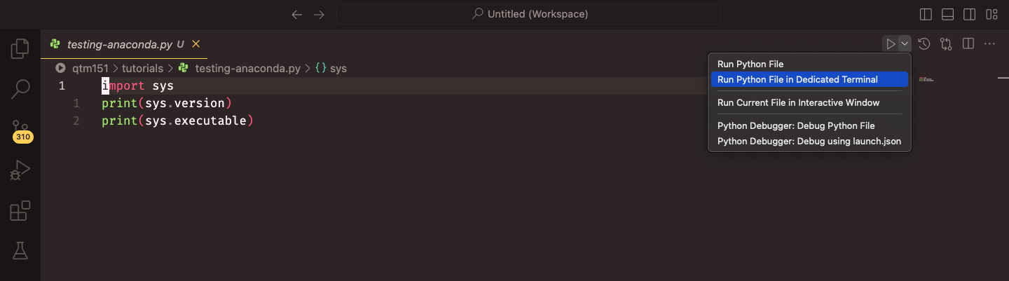 .pyfile. Select “Run Current File in Dedicated Terminal”