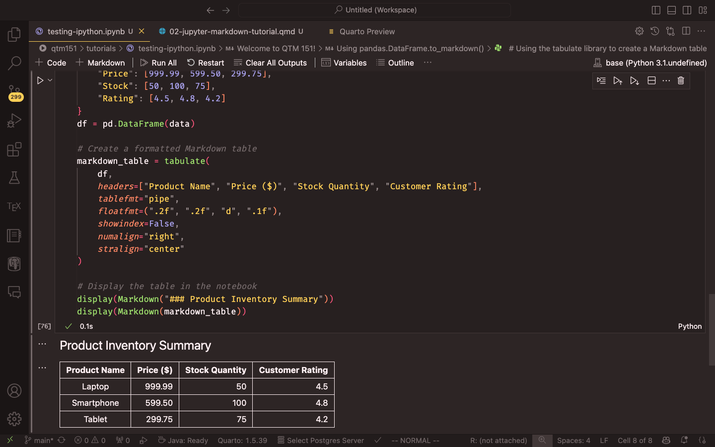 tablefmtoptions to find the most suitable for your needs.Large DataFrames: For large DataFrames, consider displaying only a subset of rows or columns to maintain readability.