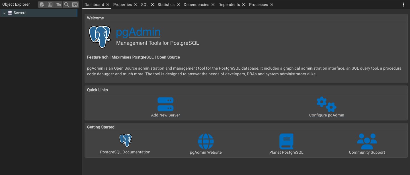 Installing pgAdmin