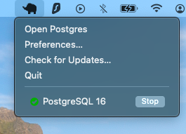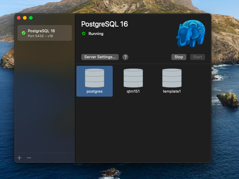 Now it is to create a database and test it with a simple table. First, make sure you have PostgreSQL running on your computer. Please run the PostgreSQL application and start the database server. You can also check if the server is running by looking at the system tray on Windows or the status bar on macOS.