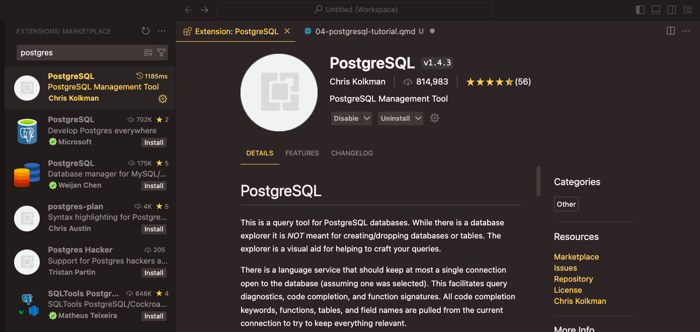You can also install the VS Code extension for PostgreSQL to interact with the database directly from the editor. This extension provides a graphical interface for managing databases, tables, and queries. You can install it from the VS Code marketplace by searching for “PostgreSQL”. Please do not install the extension made by Microsoft, as it is not actively maintained. The extension does not fully replace pgAdmin, but it is a convenient way to run queries and view the results without leaving the editor.