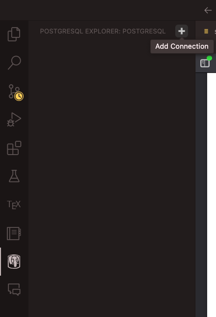 After you have installed the extension, you need to connect VS Code to the database server by clicking on the “PostgreSQL” icon in the sidebar (it looks like an elephant). Then click on the + sign in the new tab (“Add Connection”). You will need to enter the connection details for the server, including the host, port, username, and password. Once you have entered the details, click “Connect” to establish a connection to the server. In this case, the username is postgres, the password is the one you set during the installation process, the host is localhost, and the port is 5432. The database is called tutorial. You will find the student table by clicking on tutorial and then on public.