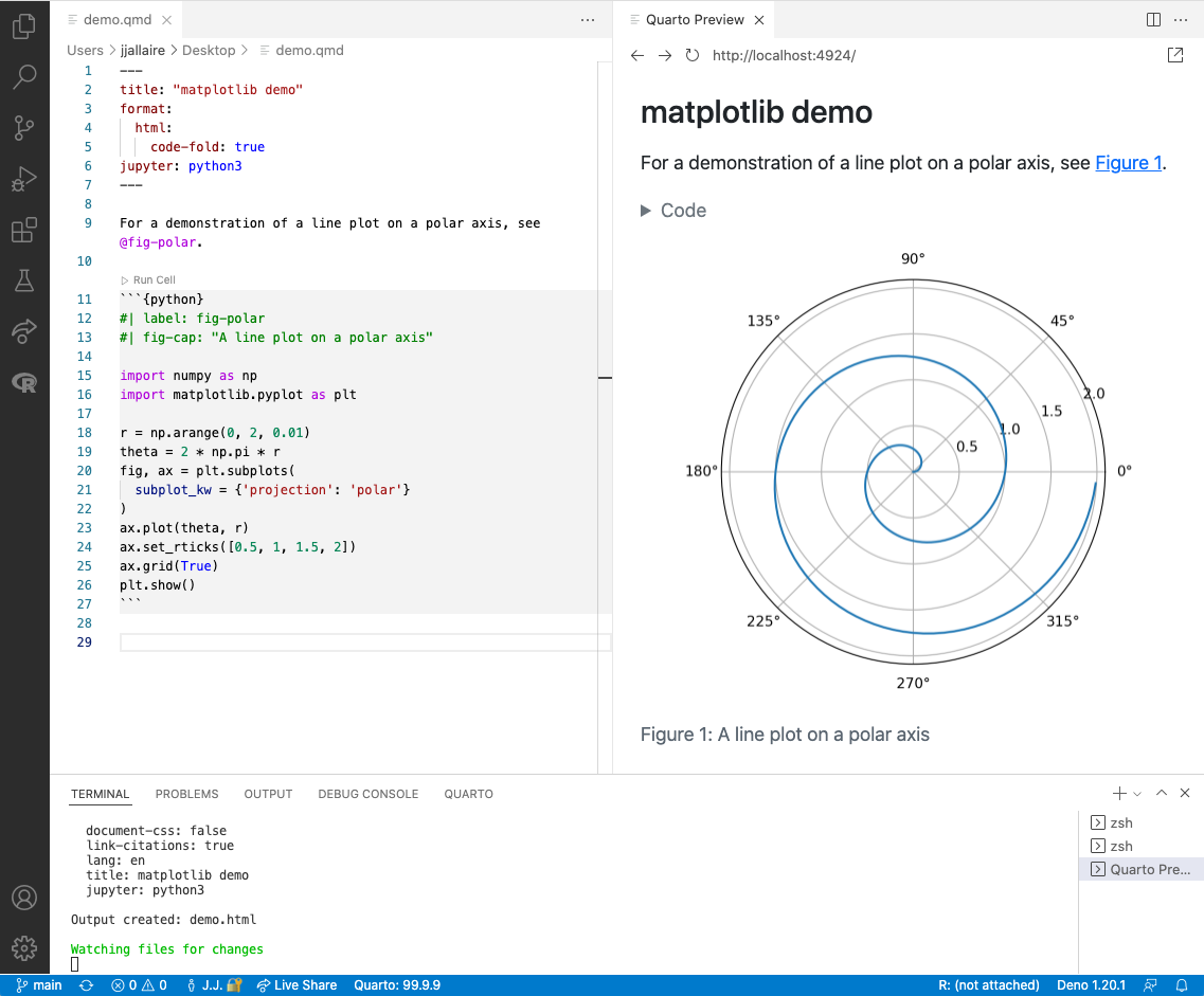 Quarto is very versatile and easy to use. If you are familiar with Jupyter Notebooks, you will be right at home with Quarto. R Markdown users will find Quarto even easier, as it is only a more powerful version of R Markdown, which supports multiple programming languages (such as Python) and output formats.